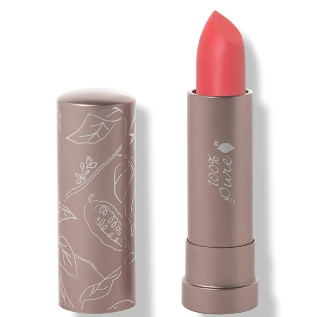 100% Pure Cocoa Butter Matte Lipstick es una barra de labios mate formulada con pigmentos de frutas saludables y una mezcla nutritiva de manteca de cacao, manteca de karité y vitamina E para hidratar mientras que proporciona un color intensamente rico.