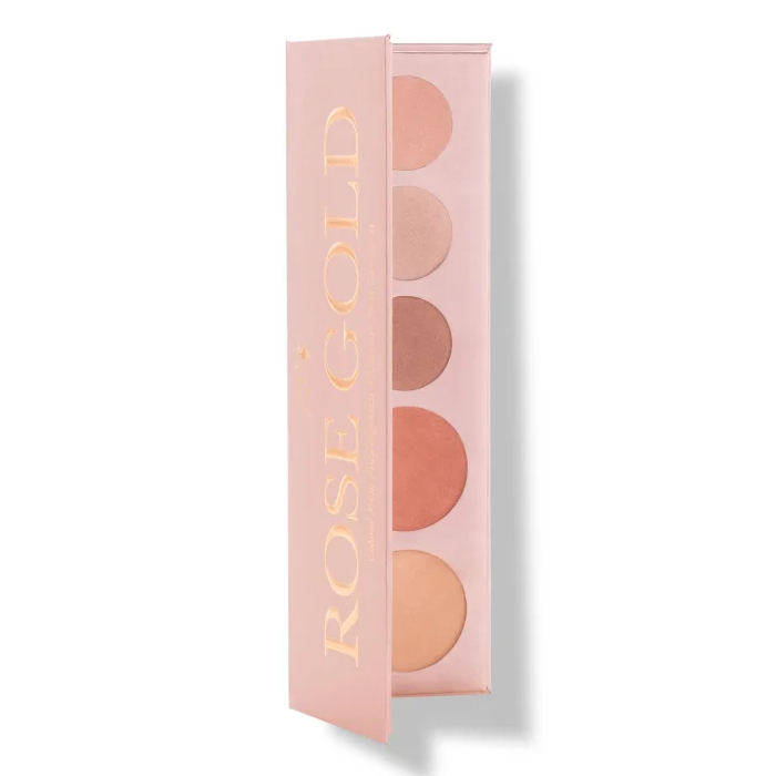 La paleta Rosegold es un verdadero tesoro de tonos oro rosa metálicos cálidos y un brillo deslumbrante.