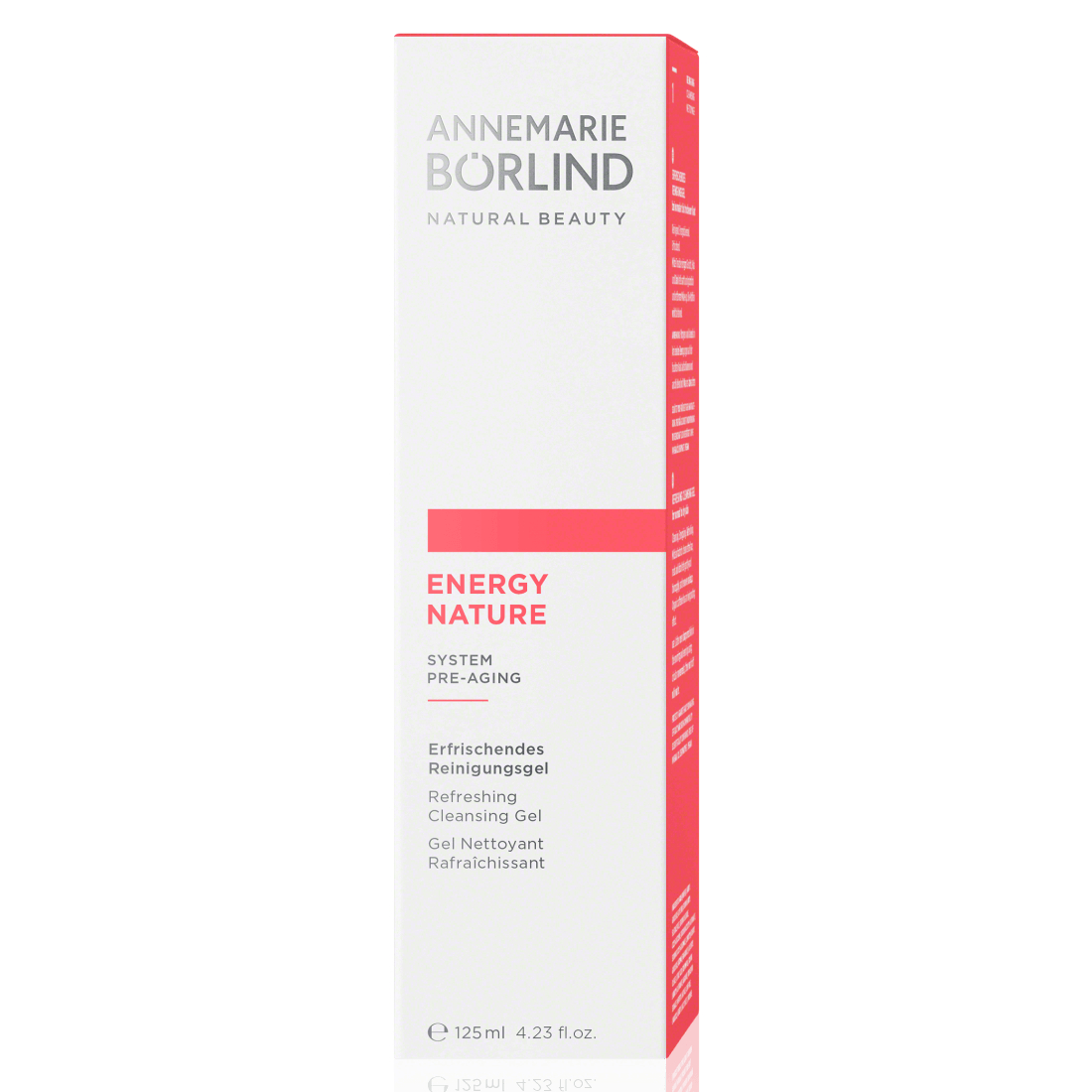 Limpieza energizante refrescante. El gel limpiador ENERGYNATURE de Annemarie Börlind, para pieles normales a secas, está formulado con tensioactivos suaves que limpian la cara, el cuello y el escote suavemente y completamente, y eliminan el maquillaje. La cafeína orgánica tiene un efecto estimulante.