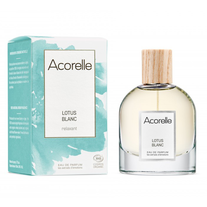 El perfume Lotus Blanc Acorelle tiene un aroma acuático con cítricos brillantes y flores de agua, para una apertura de frescura.