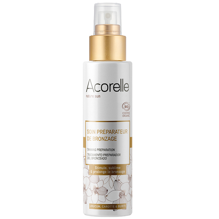 El tratamiento preparador del bronceado Acorelle prepara la piel para que la piel se broncee más rápido.