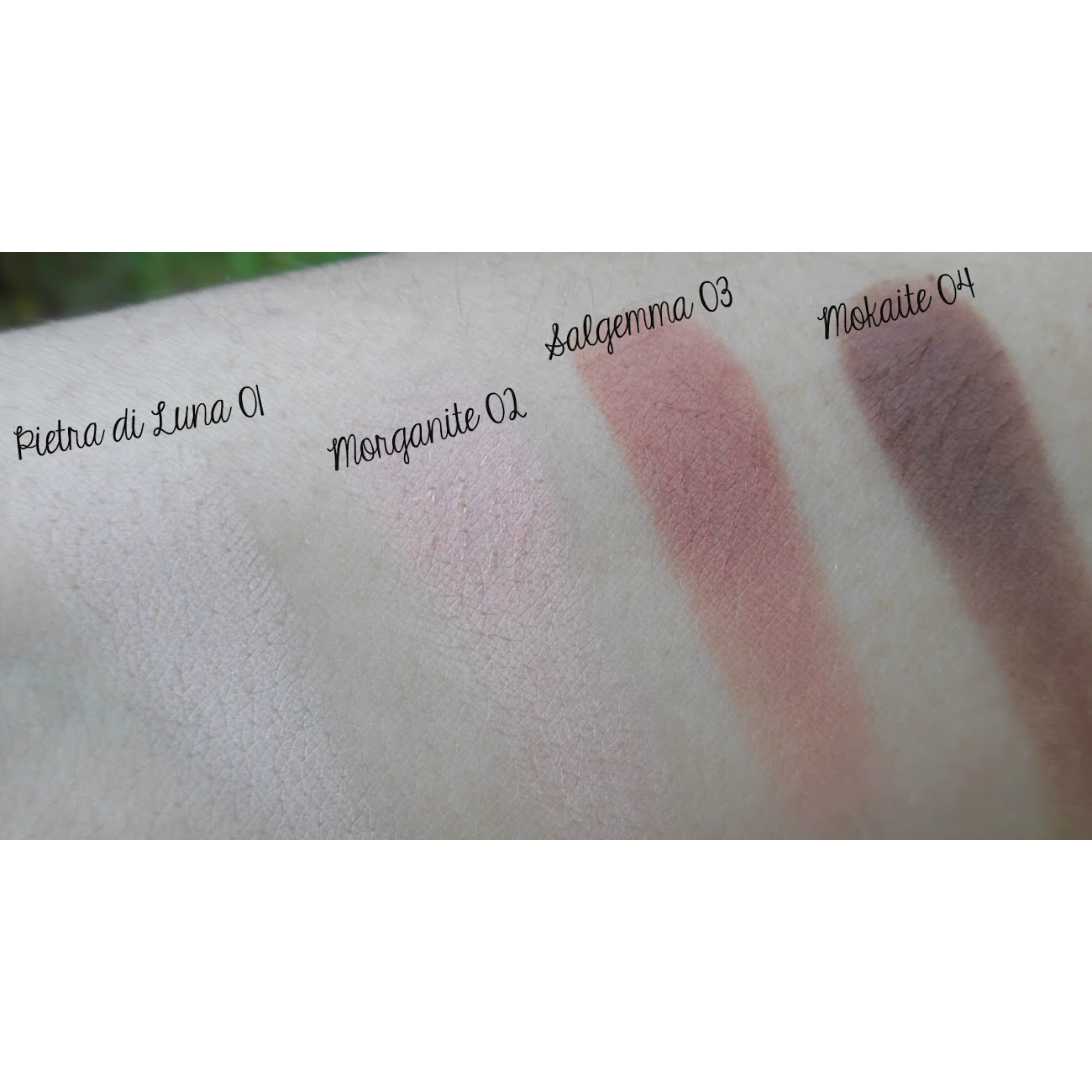 Mica, Zea Mays (Maíz) Starch*, Squalane, Silica, Zinc Stearate, Parfum, Tocopherol (Vitamina E), Glyceryl Caprylate, Pongamia Glabra (Karanja) Seed Oil, Persea Gratissima (Aguacate) Oil*, Prunus Armeniaca (Albaricoque) Kernel Oil*, Macadamia Ternifolia (Macadamia) Seed Oil*, Butyrospermum Parkii (Karité) Butter*. Puede contener +/-: CI 77891 (Dióxido de Titanio), CI 77019 (Mica), CI 77491 (Óxido de Hierro), Ci 77492 (Óxido de Hierro), CI 77499 (Óxido de Hierro), CI 77510 (Ferrocianuro Férrico), CI 77007 (Ultramarinos), CI 77742 (Violeta de Manganeso). *Procedente de la agricultura ecológica.