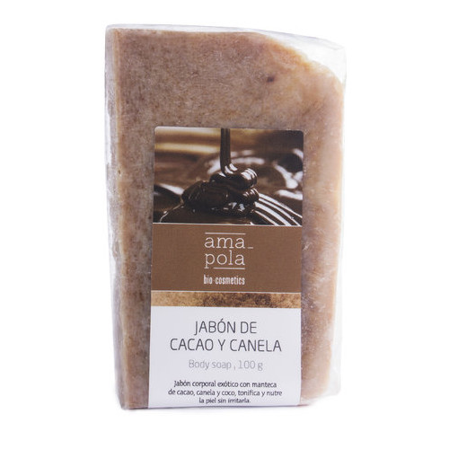 El jabón de Cacao y Canela de Amapola bio·cosmetics contiene aceite de Coco, aceite de Almendras Dulces, aceite de Palma, manteca de Cacao, aceite de Cola de Caballo y aceite esencial de Canela. El aceite de Almendras y la manteca de Cacao actúan suavizando y nutriendo la piel reseca, el aceite de Cola de Caballo es regenerador cutáneo útil para tratar el envejecimiento prematuro de la piel.