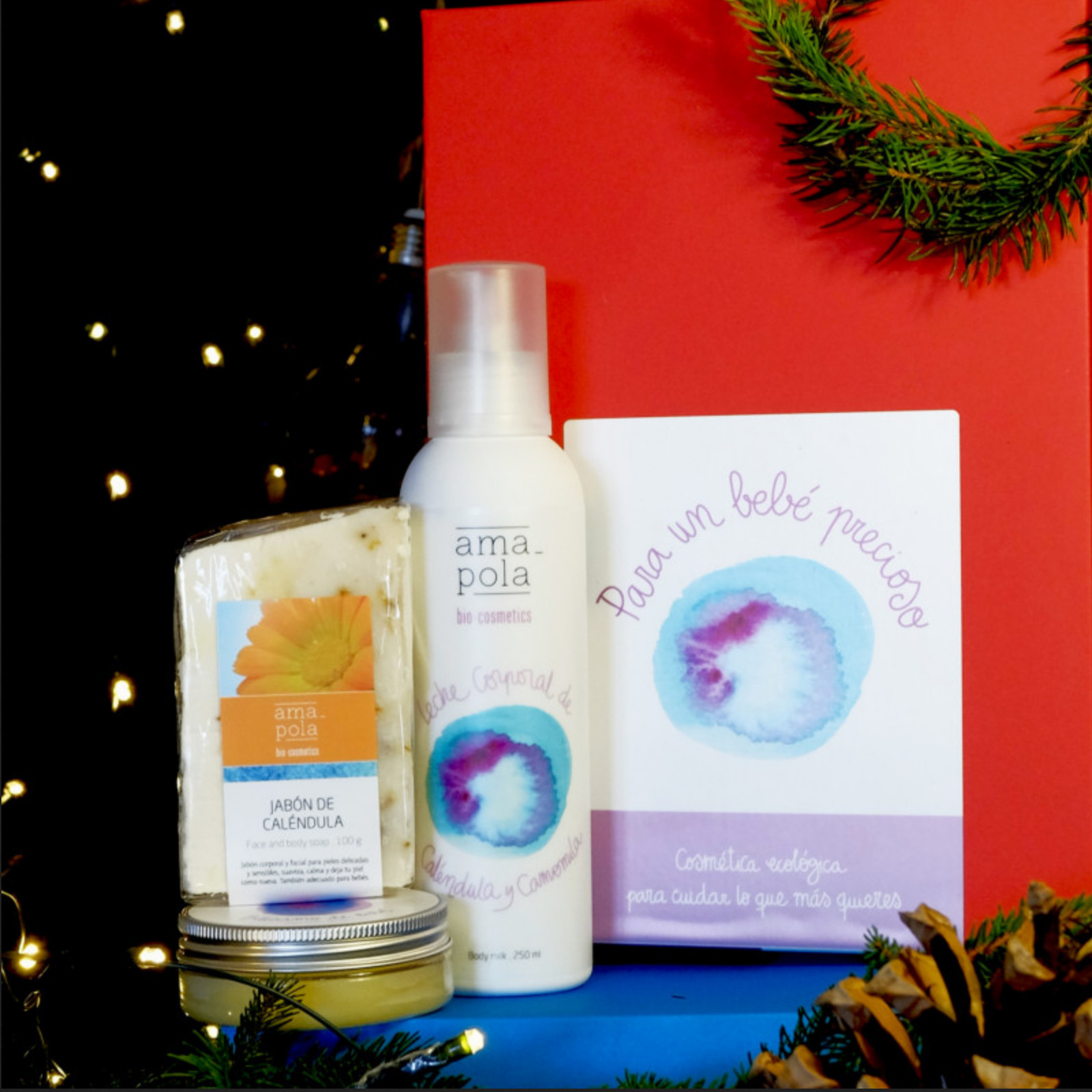 Deja latir su piel y regala cosmética sin sustancias agresivas. Leche corporal de caléndula y camomila, jabón de caléndula y bálsamo bebé para la irritación del pañal. Su piel no necesita más, él, todo tu cariño