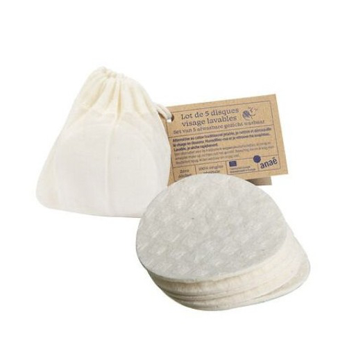 Pack de 5 discos desmaquillantes de algodón y celulosa, lavables y reutilizables.