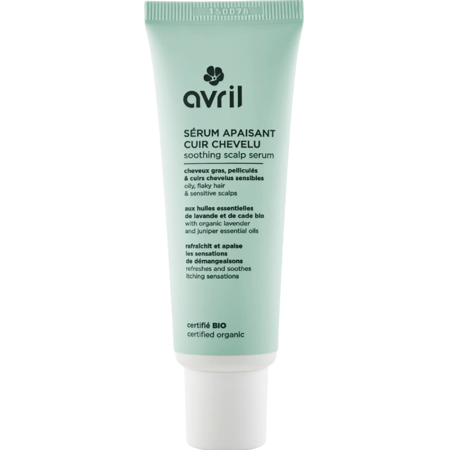 El sérum calmante para el cuero cabelludo con certificación orgánica de Avril es un tratamiento sin enjuague especialmente diseñado para calmar la picazón, reequilibrar el cuero cabelludo y proporcionar una sensación de frescura. Gracias a su fórmula de origen natural a base de aceite esencial de lavanda orgánica, aceite esencial de cade orgánico y extracto de menta piperita, proporciona un alivio duradero para el cuero cabelludo irritado, sensible o con molestias. Tras su aplicación, proporciona una agradable sensación de frescor a la vez que ayuda a reducir la aparición de caspa. El cuero cabelludo recupera su equilibrio y el cabello luce más ligero y vibrante.