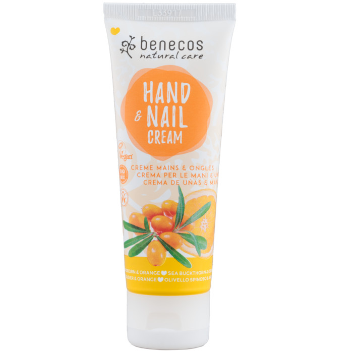 La crema para manos y uñas de Espino Amarillo y Naranja Benecos tiene una fórmula de rápida absorción y cuida las manos dejándolas suaves al tacto.