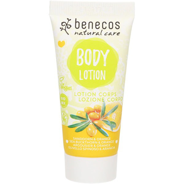 La loción corporal de Espino Amarillo y Naranja Benecos tiene una formula de absorción rápida, es ideal para el cuidado diario de todo tipo de piel y asegura suavizar la textura de la piel. Debido a su delicada textura, también es adecuada como crema para las manos. Su valiosa fórmula con aceite de Girasol y extracto de Tila mima la piel.