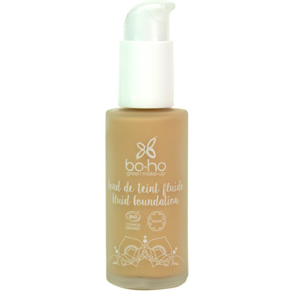La base líquida orgánica 03 Sable de Boho Green Make-up se funde sobre la piel en un velo ligero y natural.