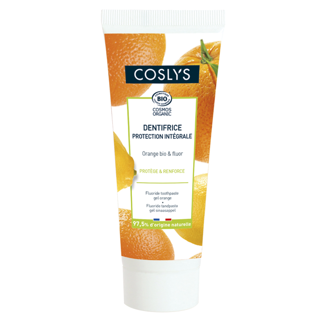 El gel dental Coslys Action Intégralees un dentífrico completa para fortalecer y proteger. Fortalece el esmalte y su textura de gel con sabor a naranja asegura un cepillado delicado .