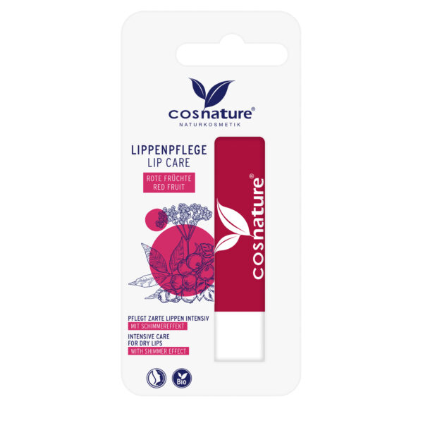 El Bálsamo Labial Frutos Rojos Bio Cosnature es ideal para un cuidado intensivo de los labios secos y/o sensibles. Hidrata, nutre y evita que los labios se sequen. Proporciona un bonito y ligero toque de brillo.