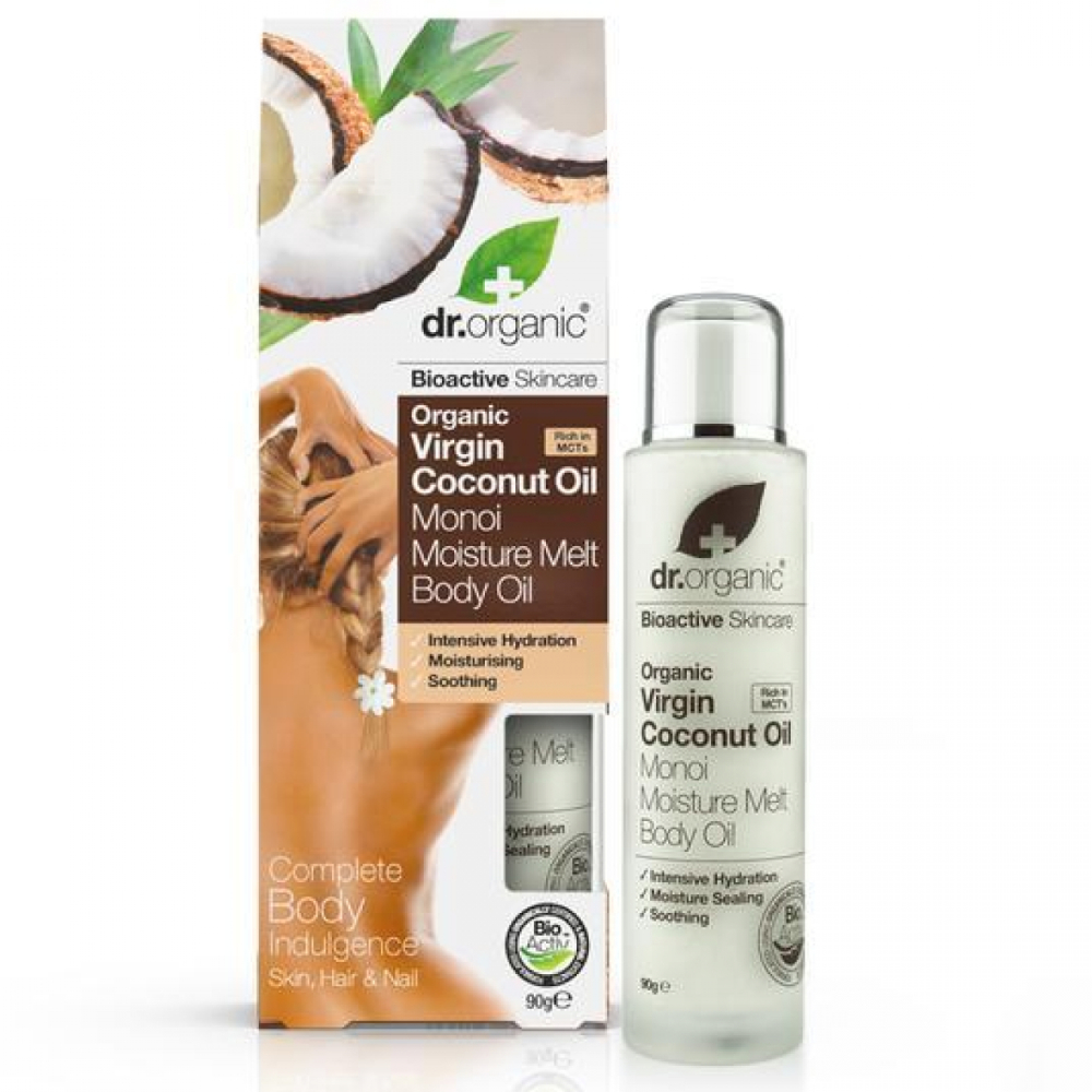 El aceite corporal fundente de coco y monoi dr. Organic es un aceite intensamente hidratante, suavizante y calmante. Tratamiento completo para el cuerpo, la piel, el cabello y las uñas; un tratamiento tropical exótico que penetra fácilmente, ayudando a rehidratar las capas más profundas de la piel. Es excelente para uso diario en todo el cuerpo y también como mascarilla capilar semanal intensiva.
