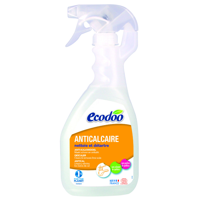 El limpiador antical en spray Ecodoo, con aceite esencial de limón y naranja, tiene una textura fluida tipo gel.
