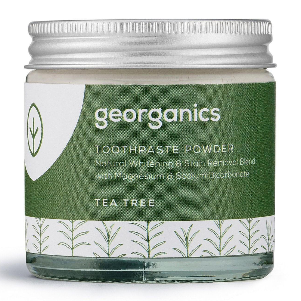Georganics Natural Toothpaste Tee Tree es un polvo de pasta de dientes blanqueador y quitamanchas natural que reduce la placa y las manchas causadas por los alimentos, el té o el café. Aromatizado con aceite de árbol de té orgánico por su aroma verde y herbal y sus propiedades antivirales.