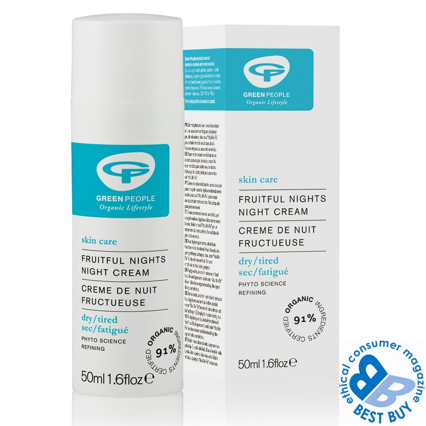 Green people Skin Care Fruitful Nights es una crema de noche sin alcohol para minimizar las líneas finas y mejorar la textura de la piel.