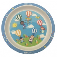 El Set de vajilla de fibra de Bambú estilo "globos" contiene 5 piezas: plato llano, plato hondo, vaso, cuchara, tenedor.