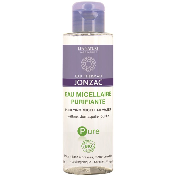La fórmula del agua micelar purificante Eau Thermale Jonzac limpia y purifica sin resecar la piel. Las micelas que contiene eliminan impurezas y restos de maquillaje. Concentrado en agua termal Jonzac, zinc y agua de hamamelis orgánica, limpia y purifica las pieles mixtas a grasas, incluso sensibles.
