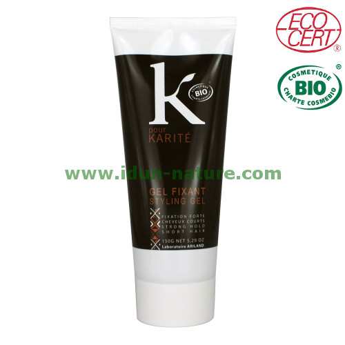 El gel fijador extra fuerte K pour Karité ha sido especialmente formulado para cueros cabelludos sensibles.