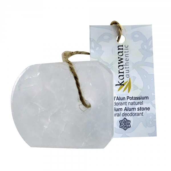 El alumbre de potasio Karawan está compuesto por minerales extraídos de canteras naturales. Se usa como desodorante natural y para después del afeitado. Regula los líquidos y neutraliza los olores de la transpiración, mientras deja que la piel respire. Su acción astringente alivia irritaciones, y suaviza y cura pequeños crtes después de la depilación o el afeitado.