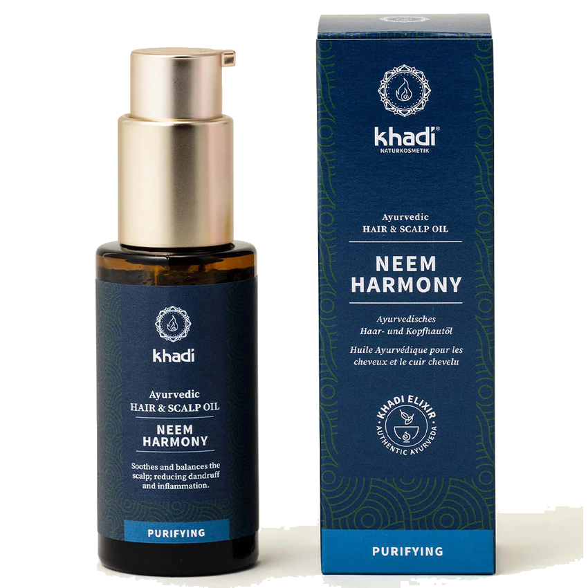 Khadi Ayurvedic Hair Oil Neem Harmony: para un cuero cabelludo calmado, armonioso y equilibrado, sin picazón ni caspa.