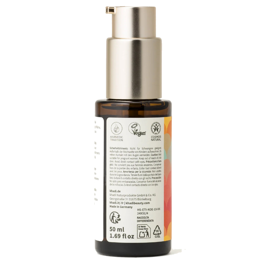 El secreto del efecto rejuvenecedor radica en el Elixir Khadi Spicy Cell-lite: de acuerdo con antiguas recetas ayurvédicas, las hierbas medicinales indias recogidas a mano se cuecen suavemente sobre un fuego abierto en un proceso tradicional. En los extractos de plantas ayurvédicas (una decocción medicada) producido de esta manera, todo el potencial y la eficacia individual de las plantas individuales se combinan para formar un todo armonioso.