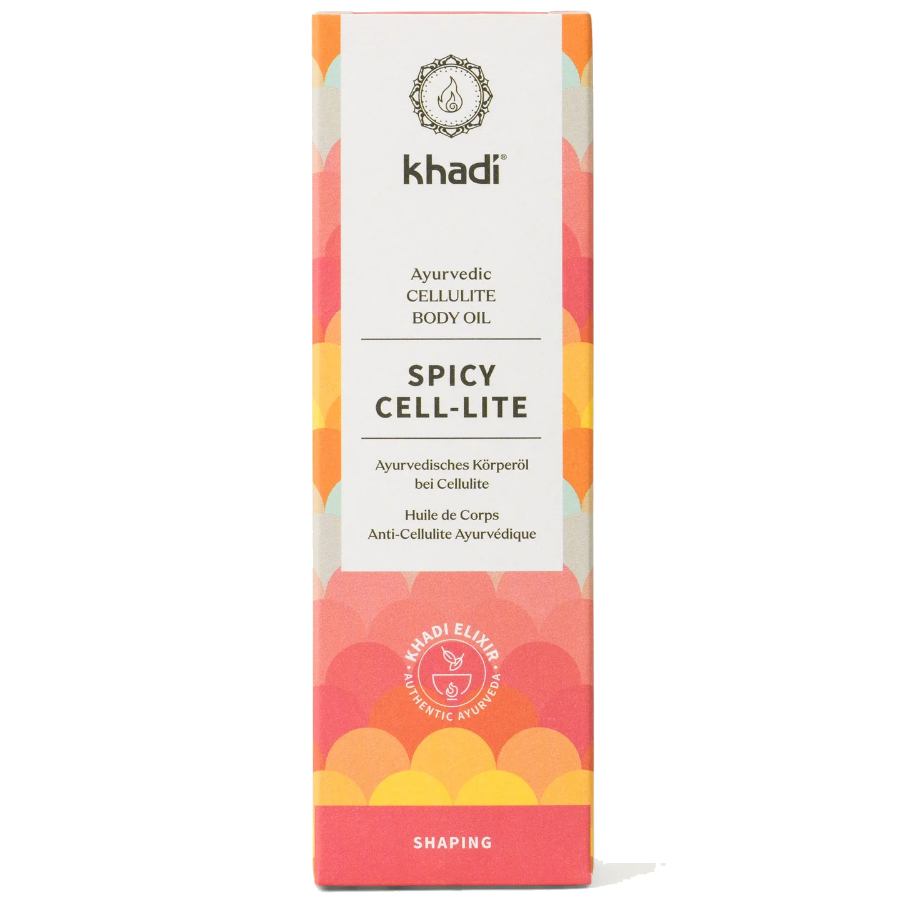 Khadi Spicy Cell-lite Elixir Body Oil es un refuerzo energético liberador para la piel. El aceite corporal khadi Spicy Cell-lite Elixir estimula el metabolismo de la piel y le ayuda a liberar los residuos metabólicos almacenados en la piel. Mientras que nuestro aceite corporal khadi Triphala Tritox estimula el tejido extracelular y hace que la linfa fluya, el aceite corporal khadi Spicy Cell-lite Elixir activa el metabolismo de la piel de forma intensiva y sostenible. Esto convierte los depósitos, que percibimos como celulitis, en un horno para tus células y en esta combinación contribuye a una silueta corporal más tensa y ligera. La receta tradicional con ingredientes activos ayurvédicos como el jengibre y la mostaza castaña siempre se ha utilizado en las curas ayurvédicas para poner el cuerpo en forma y devolver a las células su energía. Al mismo tiempo, la composición de los aceites esenciales estimula tu mente y fortalece tu voluntad de seguir adelante con todas tus fuerzas.