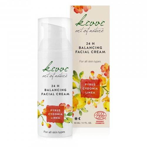La crema equilibrante 24 horas Kivvi es una crema equilibrante para día y noche y para todo tipo de piel. Contiene extractos de Bardana, Gayuba y Ortiga que protegen la piel, regula la producción de sebo y proporcionan un efecto antibacteriano. Los extractos de Aciano y Membrillo hidratan, tonifican y calman la piel.