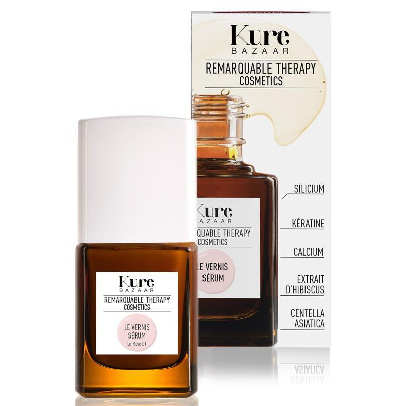 Le Vernis Sérum Le Rose 01 de la colección de esmaltes de uñas en sérum de Kure Bazaar Remarquable Therapy Cosmetics es un bonito nude translúcido ligeramente rosado.