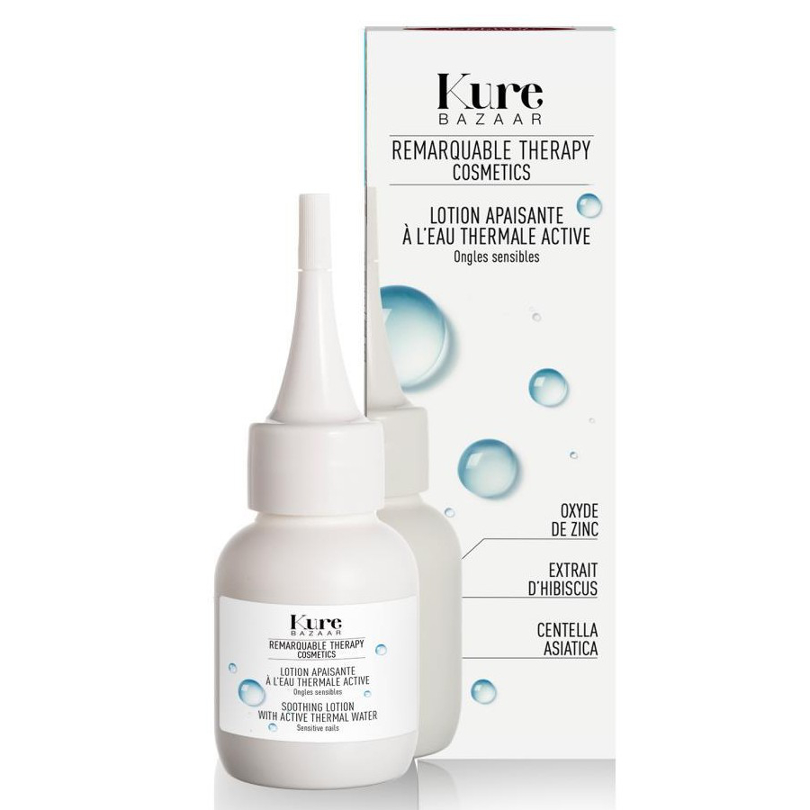 La loción calmante Kure Bazaar Remarquable Therapy Cosmetics es una loción calmante especialmente diseñada para uñas y contornos debilitados. Su fórmula única, enriquecida con agua termal activa, reconocida por sus excepcionales propiedades calmantes y suavizantes, se combina con óxido de zinc curativo y extractos naturales de hibisco y centella asiática para aliviar las zonas sensibles y secas.