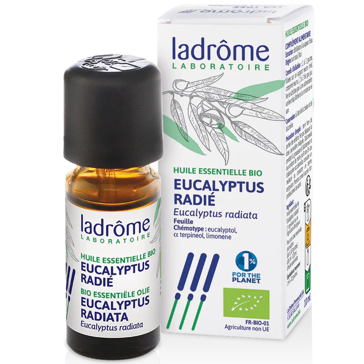 El aceite esencial de Eucalipto Radiata Ladrôme favorece el buen funcionamiento de las vías respiratorias al ayudar a despejar el espacio, pero más suave que el eucalipto globulus.
