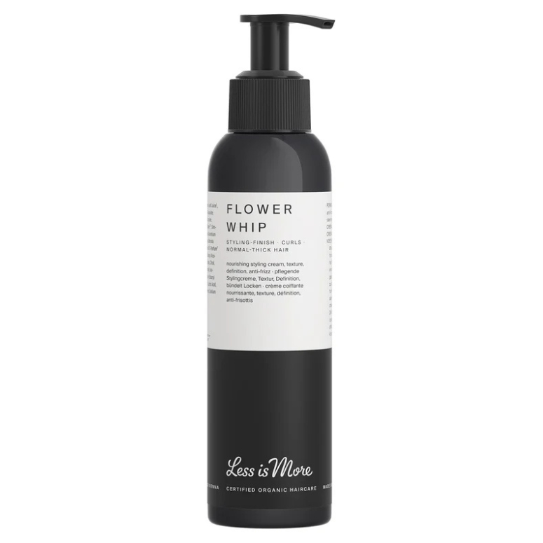 Less is More Flower Whip es una crema de peinado nutritiva para unos rizos maravillosamente cerrados, y texturas y definiciones simples. Proporciona elasticidad y un atractivo brillo.