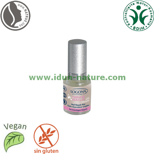 El tratamiento reparador de uñas Logona Natural Nails endurece las uñas reforzando su estructura de manera natural gracias al Silicio vegetal. Su fórmula regeneradora con aceite esencial de Mirra, con propiedades antiinflamatorias y antisépticas, previene también de inflamaciones de origen bacteriano.