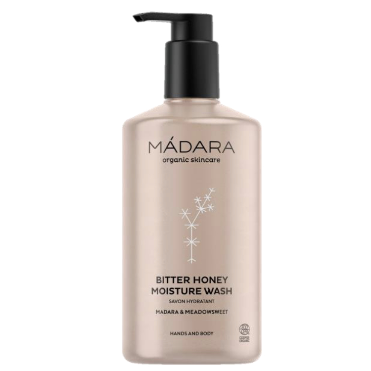 Bitter Honey Moisture Wash de Mádara es un gel limpiador para cuerpo y manos enriquecido con fisio-hidratantes naturales para hidratar y suavizar la piel, dejándola suave y flexible.