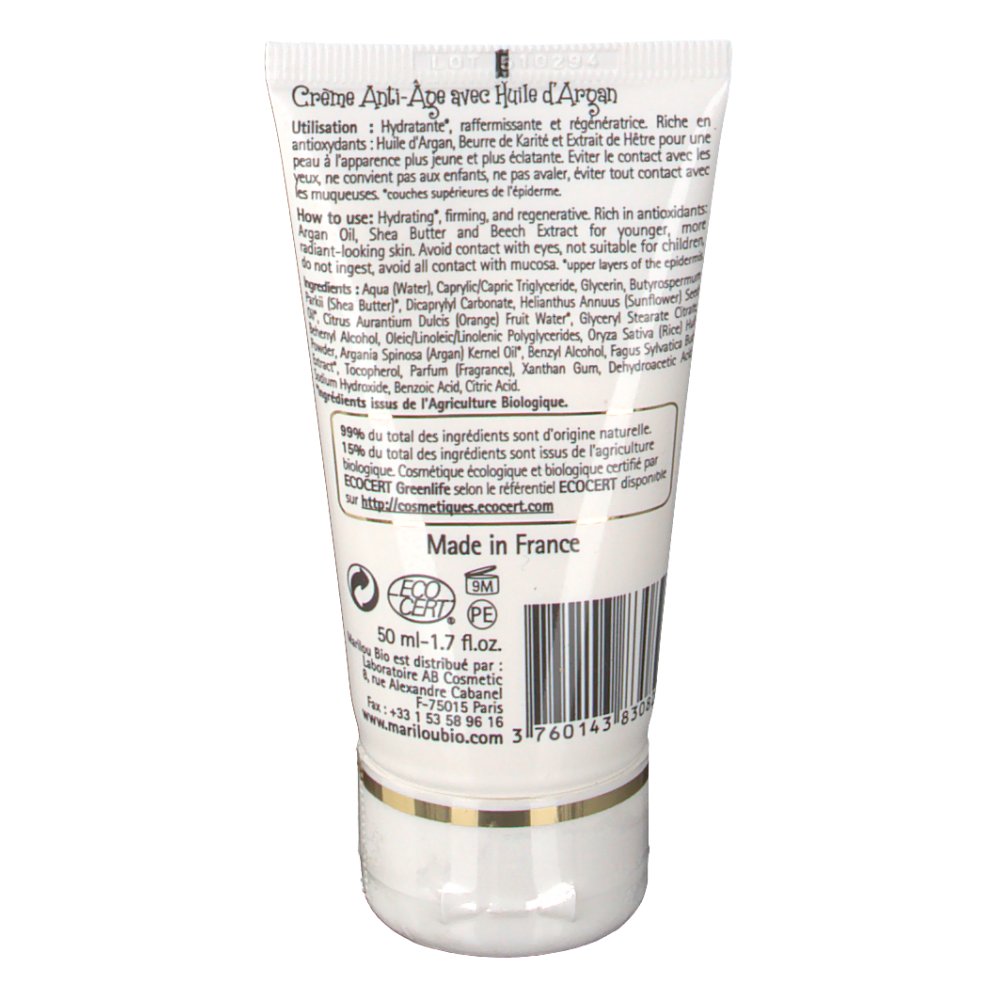 La crema antiedad al aceite de Argán de Marilou Bio es hidratante*, reafirmante y regeneradora. Rica en antioxidantes: el aceite de Argán, la manteca de Karité y el extracto de Haya proporciona a la piel un aspecto más joven y radiante.