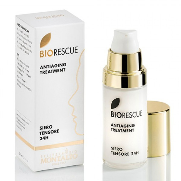 El suero tensor 24 horas BioRescue Montalto tiene una fórmula de acción energizante, con Ácido Hialurónico, que despierta la vitalidad de la piel, alisa pequeñas arrugas y garantiza un considerable efecto lifting inmediato. Alivia los signos de estrés y cansancio. La piel resultará inmediatamente más luminosa, firme y compacta. Acelera la formación y regeneración celular. Con plata y mica que aportan luminosidad.