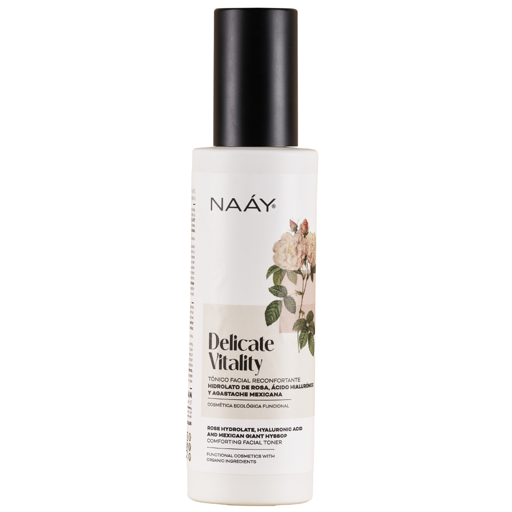 Naáy Botanicals Delicate Vitality es un tónico facial que reconforta, descongestiona, relaja, calma, equilibra, restaura, limpia e hidrata tu piel. Siente la vitalidad de la naturaleza.