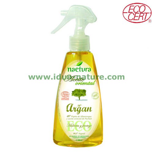 El aceite oriental de Naetura, certificado por Ecocert, no contiene parabens, perfumes sintéticos, sulfatos, derivados del petróleo como la parafina u otros ingredientes agresivos de origen sintético.