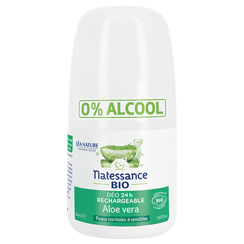 El desodorante recargable Aloe vera 24 horas Natessance, enriquecido con verbena orgánica, garantiza una eficacia de 24 horas sin bloquear el proceso natural de transpiración.
