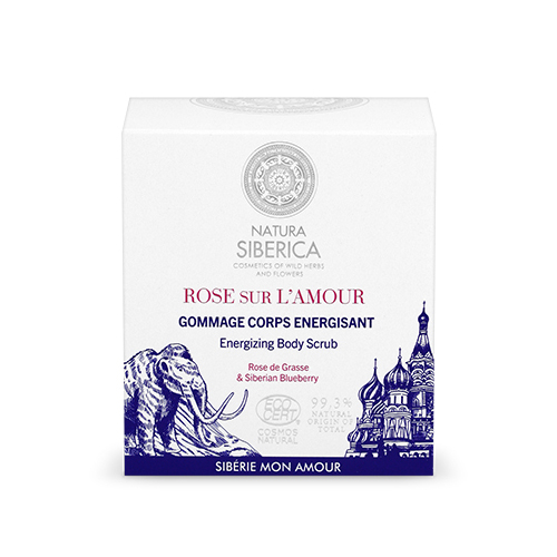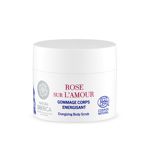 El exfoliante corporal energizante Rose Sur L'Amour Natura Siberica es sensual y delicioso exfoliante cque ombina las propiedades de la tonificante Rosa de mayo con las bayas siberianas más vigorizantes para revitalizar y suavizar la piel favoreciendo su renovación: el Arándano azul orgánico es rico en ácidos orgánicos, el extracto de Enebro orgánico siberiano tiene un efecto purificante, el extracto de Serbal orgánico es una fuente de vitamina C. El aceite orgánico de Espino cerval de mar de Altái ayuda a preservar la flexibilidad de la piel. La piel luce radiante, tonificada, suave y calmada.