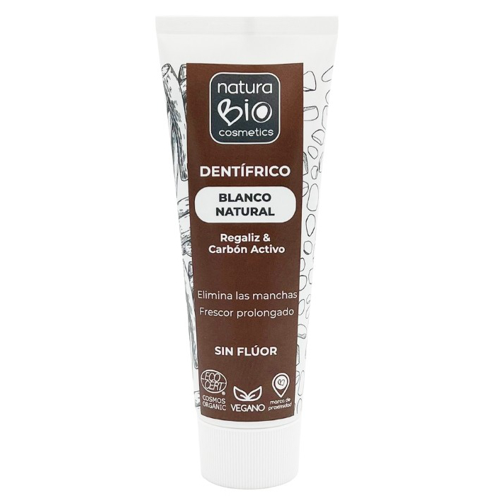El dentífrico Blanco natural de NaturaBIO Cosmetics es una solución completa para el cuidado de tus dientes y encías. Este dentífrico innovador combina carbón activo y extractos naturales para eliminar manchas y devolver el blanco natural de tus dientes. Disfruta del sabor único de menta y regaliz, ideal para mantener un aliento fresco y dulce durante todo el día.