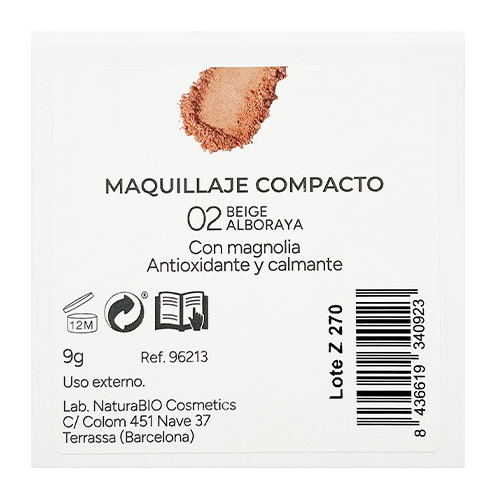 El Maquillaje Compacto 02 Beige Alboraya de NaturaBIO Cosmetics ofrece un acabado mate y natural, ideal para quienes buscan uniformidad y suavidad en su rutina de maquillaje. Inspirado en la luminosidad de las arenas del Algarve, este compacto está diseñado para realzar la belleza de la piel clara, aportando un tono suave y equilibrado.