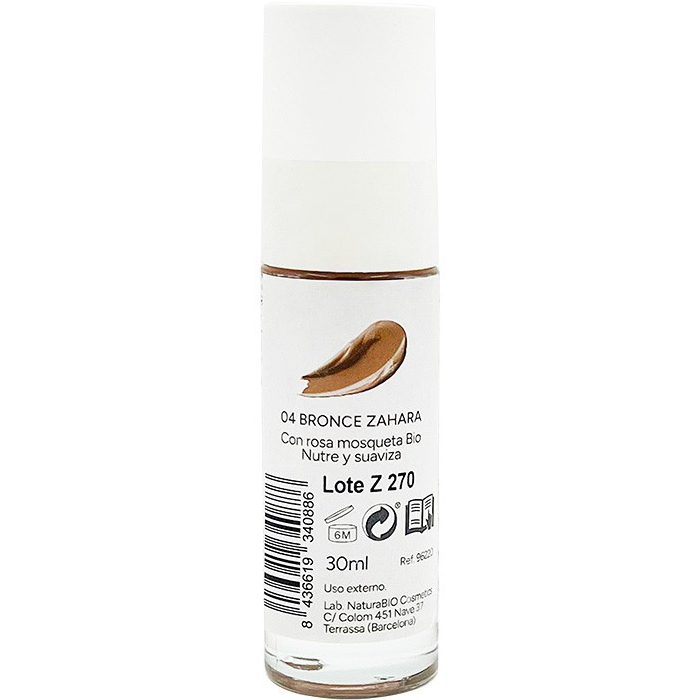 El Maquillaje Fluido 04 Bronze Zahara de NaturaBIO Cosmetics es ideal para realzar la piel bronceada, aportando un toque de luz y uniformidad que resalta la belleza natural. Inspirado en los cálidos atardeceres de Zahara de los Atunes, este maquillaje combina pigmentos minerales y una textura fluida que se adapta perfectamente al rostro.