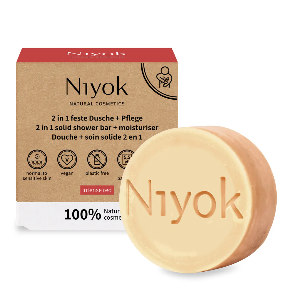 El gel de ducha + cuidado hidratante Intense Red Niyok proporciona una limpieza suave y es hidratante gracias a la rica manteca de karité. Su aroma intensamente cálido se desarrolla cuando entra en contacto con el agua.