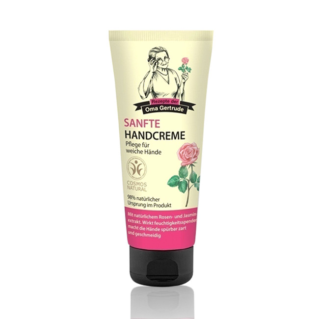 La crema suavizante de manos Rezepte der Oma Gertrude, a base de extractos ecológicos de Rosa y Jazmín, aporta cuidado diario a la piel seca y dañada de las manos, suavizándola, hidratándola y restaurándola profundamente de forma efectiva.