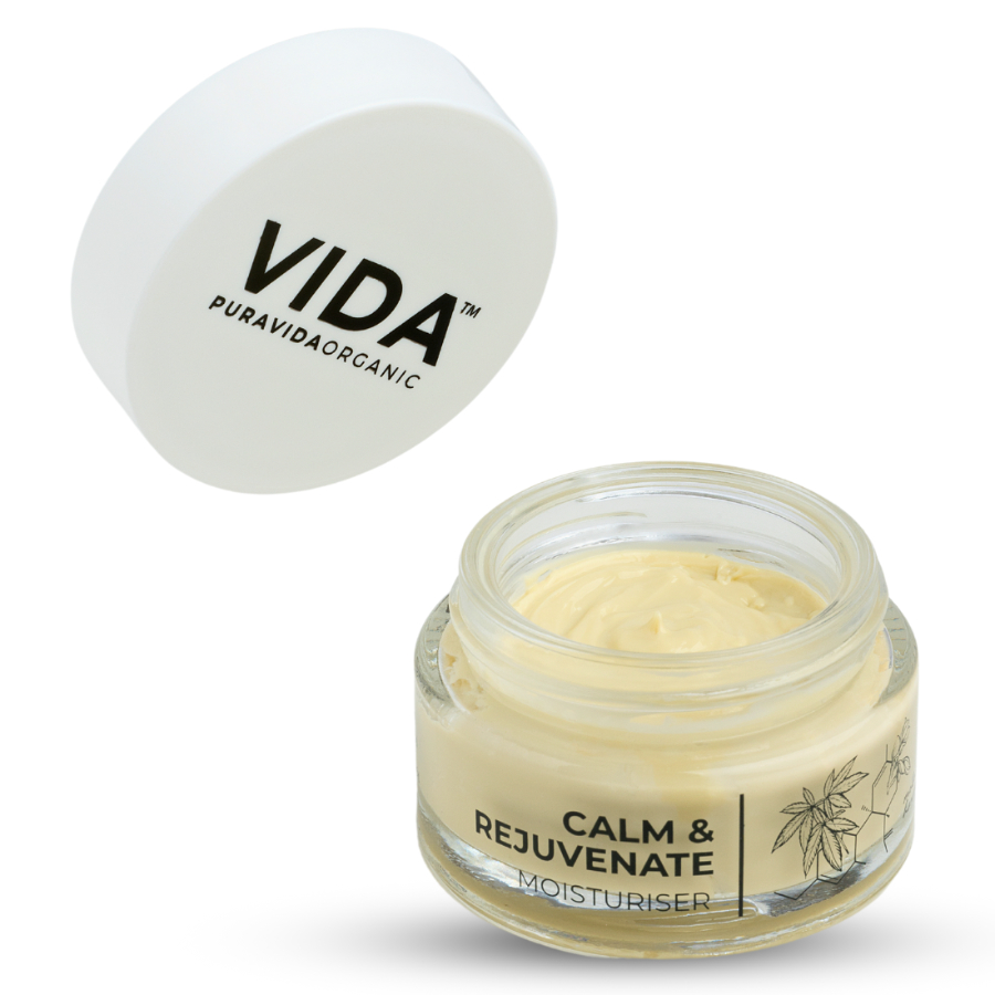 Pura Vida Organic Calm & Rejuvenate CBD Moisturiser es una crema hidratante calmante para piel estresada y con tendencia a la irritación. Experimenta el poder calmante y rejuvenecedor de los ingredientes botánicos naturales. Esta crema hidratante ligera y no comedogénica ofrece una experiencia calmante y revitalizante para tu piel y tus sentidos. Enriquecida con 1000 mg de CBD de alta calidad, esta crema hidratante reduce el estrés de la piel, mejorando su tranquilidad y bienestar. El extracto de sangre de drago fortifica y repara, mientras que una rica combinación de ácido hialurónico, manteca de karité, aceite de semilla de uva y aceite de jojoba proporciona una hidratación profunda, dejando la piel aterciopelada y revitalizada. El hidrosol de melisa y el extracto de manzanilla mitigan suavemente la irritación y la hinchazón, mientras que el aceite de geranio rosa armoniza la producción de sebo de la piel para una tez luminosa. El aroma refrescante del aceite de limón realza esta experiencia hidratante, revitalizando tus sentidos.
