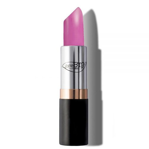 La barra de labios PuroBIO es cubriente, cremosa, y tiene un acabado semi-mate.