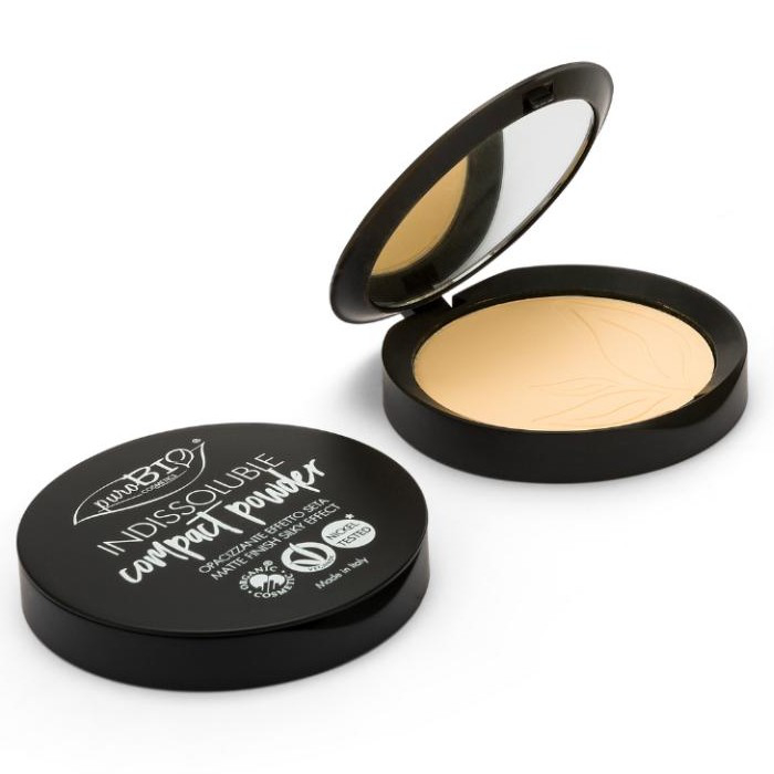 El polvo compacto Indisoluble PuroBIO tiene una textura sedosa, ligera y aterciopelada que unifica y matifica la piel. Adecuado para completar la base de maquillaje y fijarla. Además, permite una correcta aplicación de los productos posteriores.