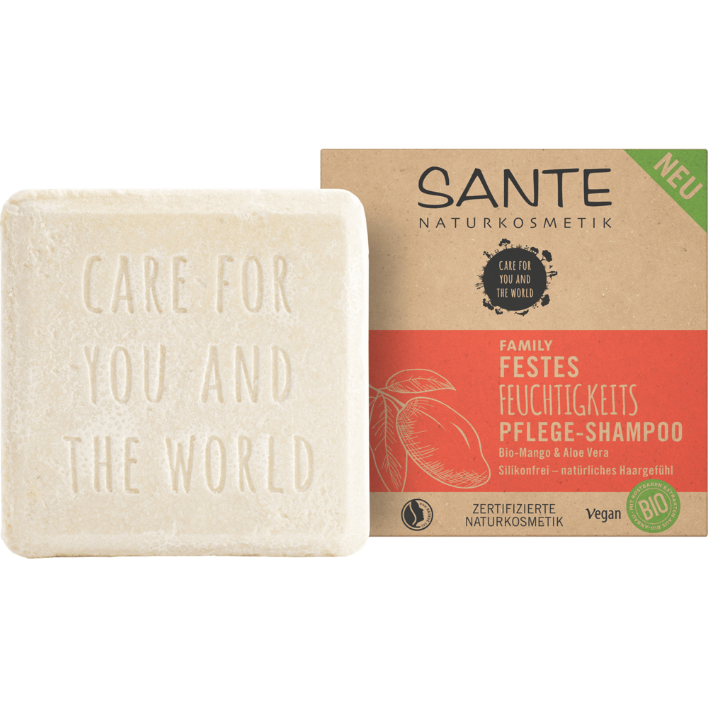 El champú sólido hidratante Bio-Mango y Aloe Vera SANTE FAMILY, con mango orgánico para cabello seco proporciona una hidratación intensa. Este champú naturalmente eficaz limpia de forma especialmente suave y hace espuma en abundancia. Con un delicado aroma a coco puramente natural.