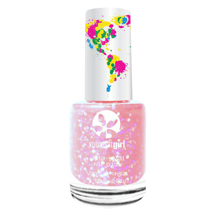 El galardonado esmalte de uñas natural eco-friendy Suncoatgirl es a base de agua, inodoro, no tóxico, libre de vapores químicos y desprendible. No es necesario quitaesmalte.