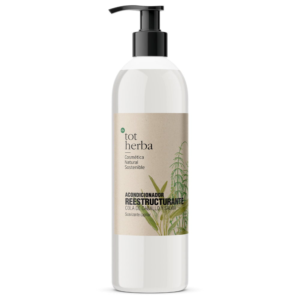 El acondicionador capilar de cola de caballo y salvia Tot Herba acondiciona el cabello dejándolo suave y sedoso, con mayor brillo, fuerza y vitalidad.